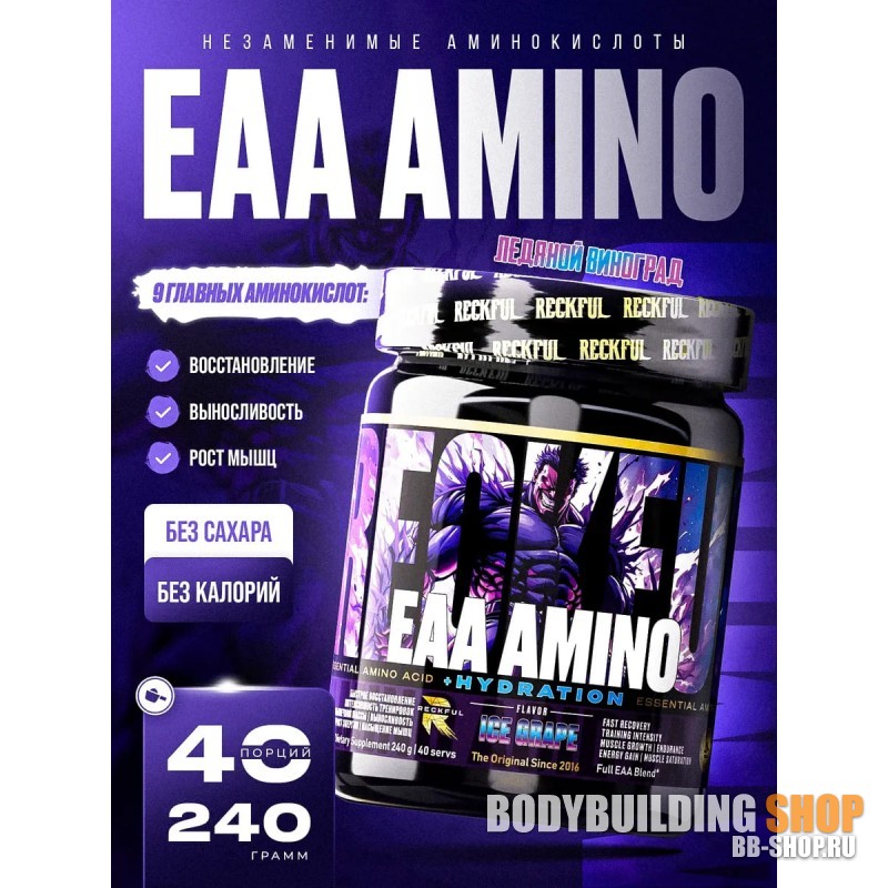 Вы можете купить EAA AMINO (240гр) в магазинах BODYBUILDING SHOP. RECKFUL \ BCAA EAA AMINO (240гр): описание, фото, состав, отзывы покупателей, инструкция по применению.