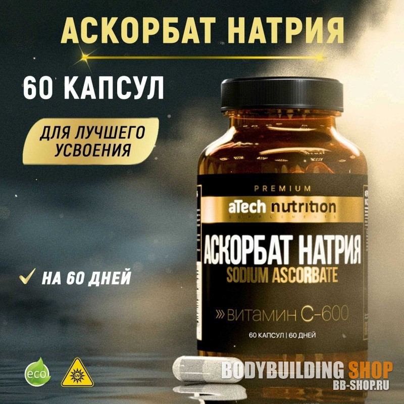 Вы можете купить PREMIUM Аскорбат Натрия 600 мг (60капc) в магазинах BODYBUILDING SHOP. aTech Nutrition \ Витамины PREMIUM Аскорбат Натрия 600 мг (60капc): описание, фото, состав, отзывы покупателей, инструкция по применению.
